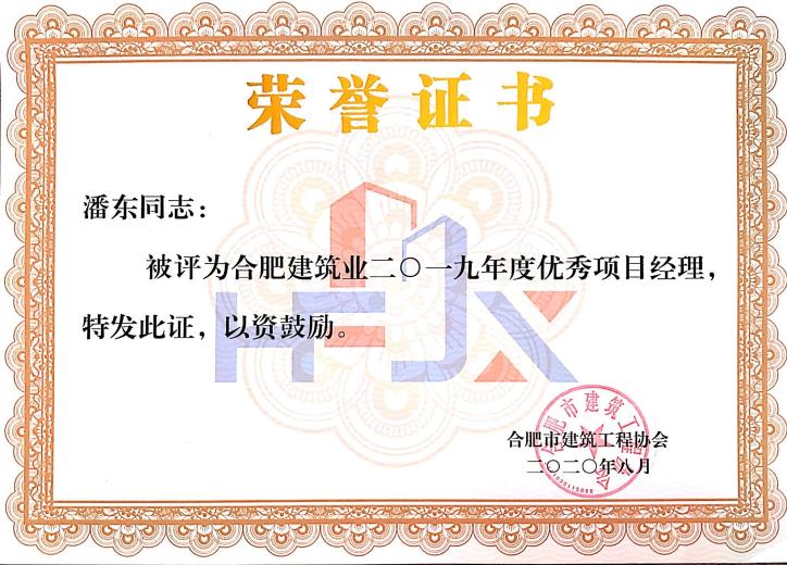 2020年安徽省建筑业企业优秀项目经理--周振铎