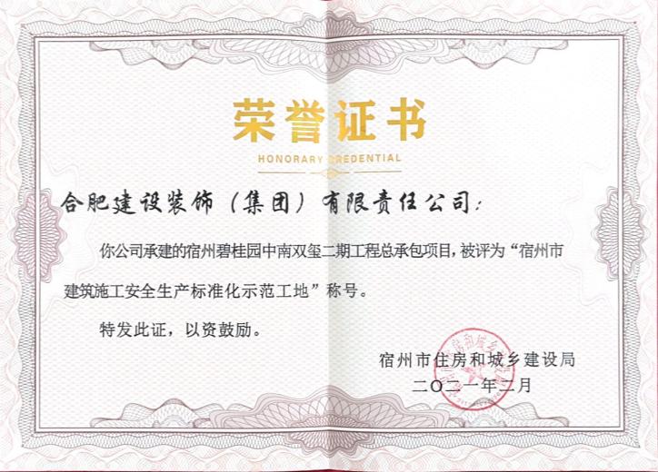 宿州碧桂园中南双玺二期总承包工程——安徽省建筑安全生产标准化示范小区优秀项目经理--陈玉