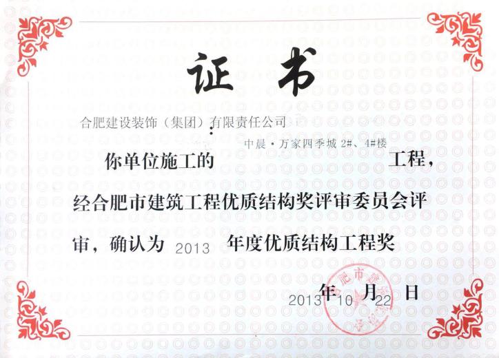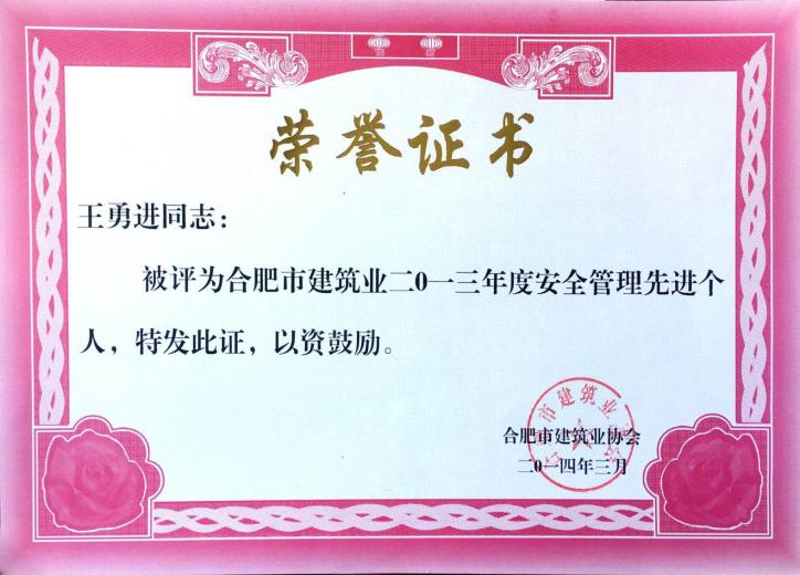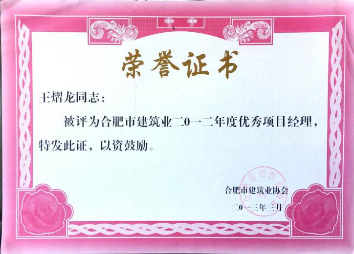 合肥市建筑业2012年度优秀项目经理——王熠龙