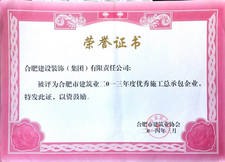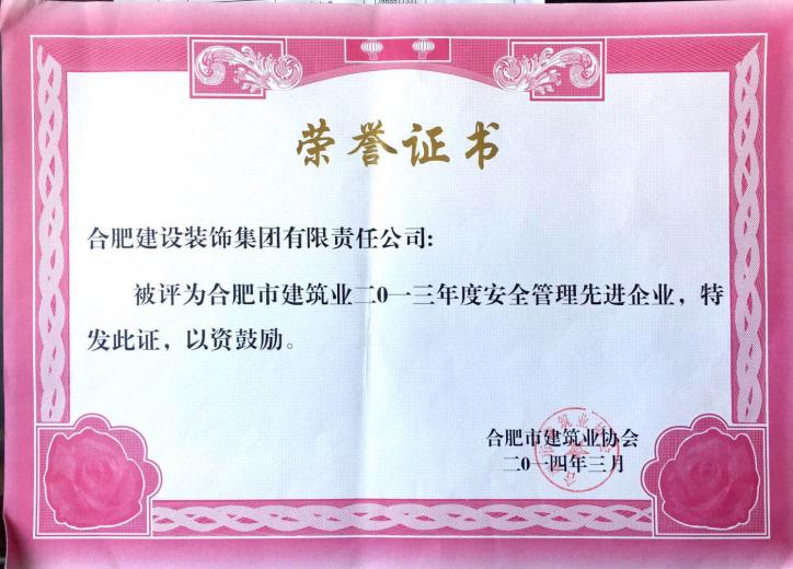 合肥市建筑业2013年度质量管理先进个人——黄东