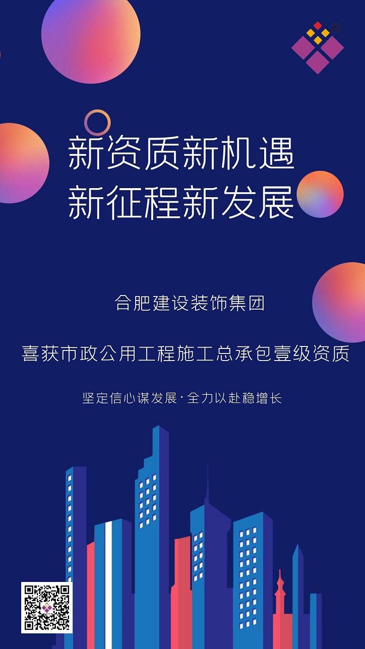 近日,经安徽省住房和城乡建设厅审核批准,集团顺利取得市政公用工程施工总承包壹级资质,这是继2008年3月取得建筑工程施工总承包国家壹级资质、2022年1月取得华体会网页版登录入口监理甲级资质后,获得的又一项重要资质,这将为集团进一步开拓市政公用工程市场,培育新的经济增长点,实现高质量发展奠定了坚实的基础。