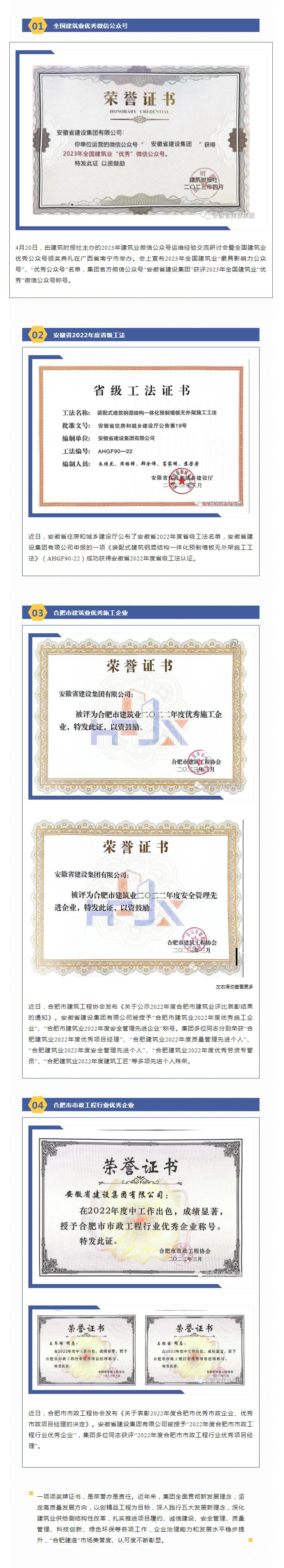 集团荣获“2022年安徽省优秀市政施工企业”