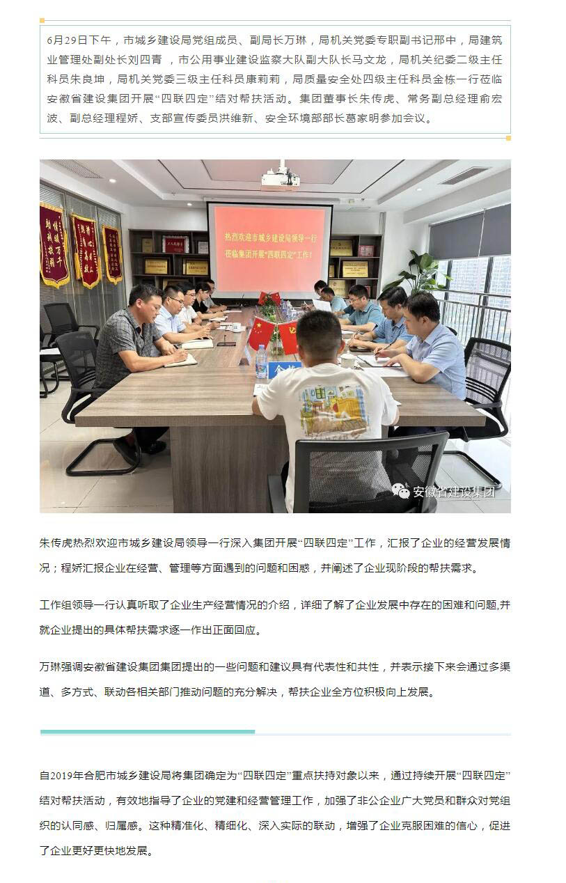 >市城乡建设局领导一行到集团开展“四联四定”结对共建活动