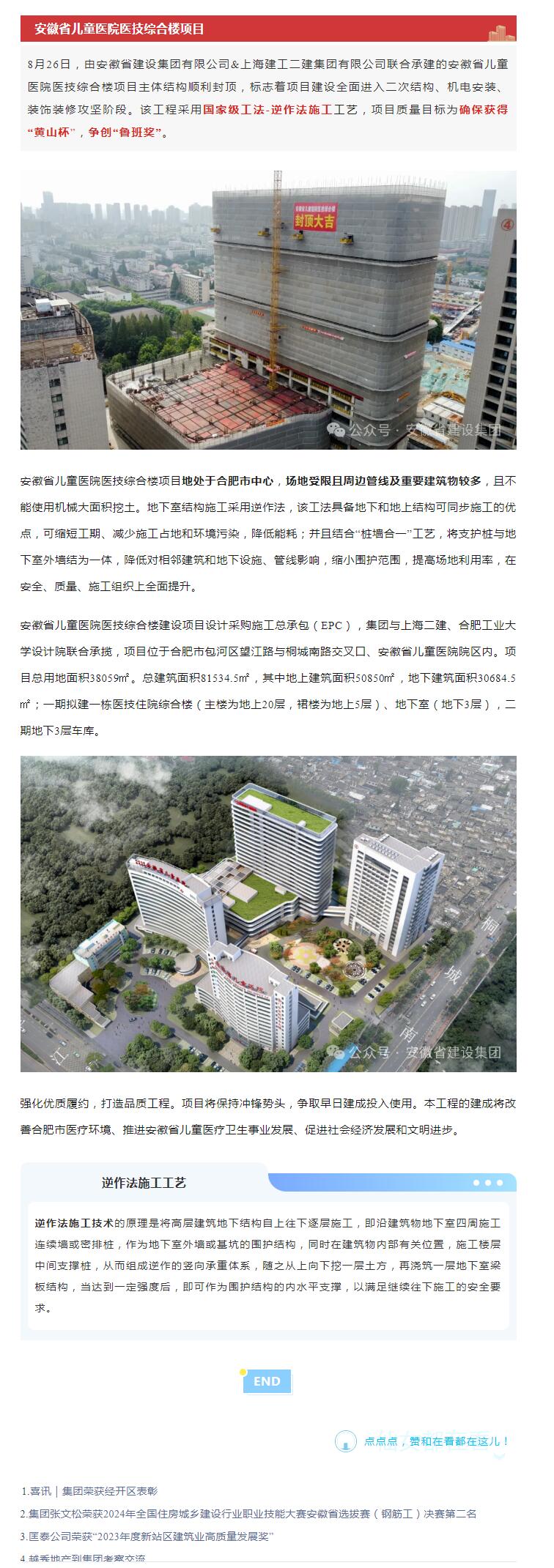 >喜讯 | 安徽省儿童医院医技综合楼项目主体结构顺利封顶